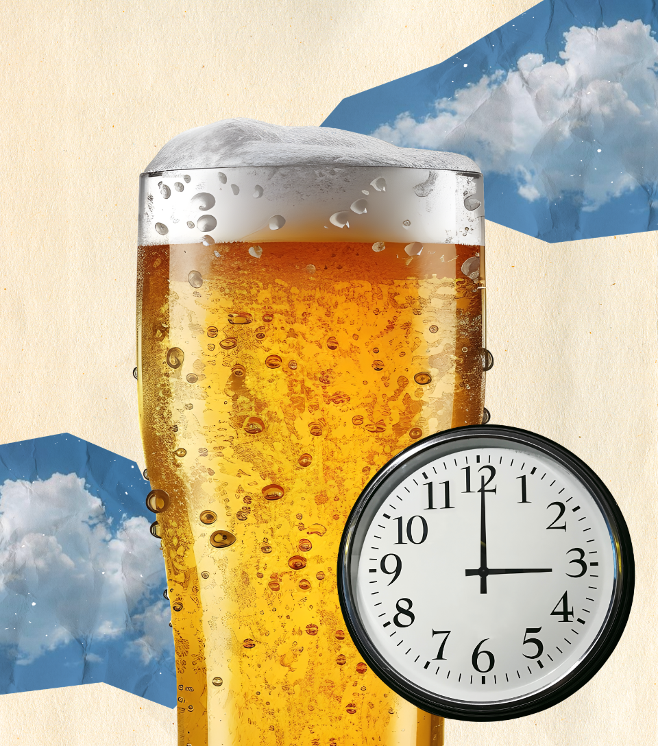 Het glas onderzoekt hij met een kennersblik en de schuimkraag is twee vingers breed. De eerste
