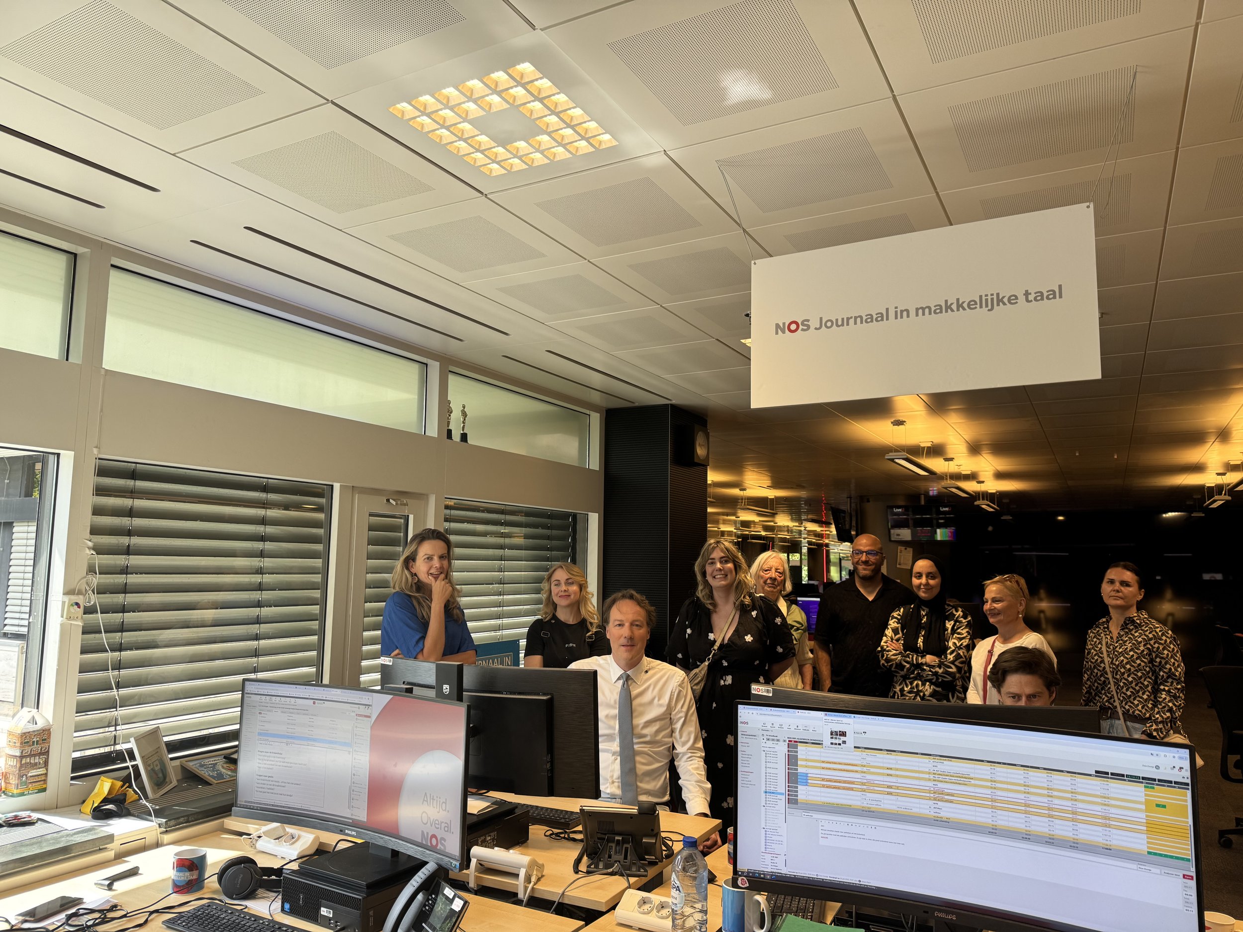 De beginnersgroep die wekelijks op twee plekken in Bussum les krijgt, bezocht de NOS, waar zij zagen hoe het Journaal in Makkelijke Taal wordt gemaakt. De rondleiding leidde langs redactieruimtes, studio’s en presentatoren. Voor veel deelnemers was het een bijzondere ervaring: van het begrijpen van het Journaal tot op de foto met presentator Joris Marseille van het Jeugd Journaal die hun kinderen allemaal kennen omdat zij op school iedere dag dat Journaal bekijken.